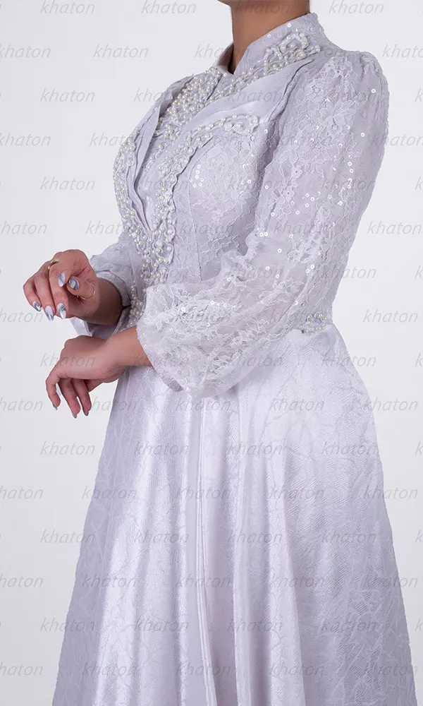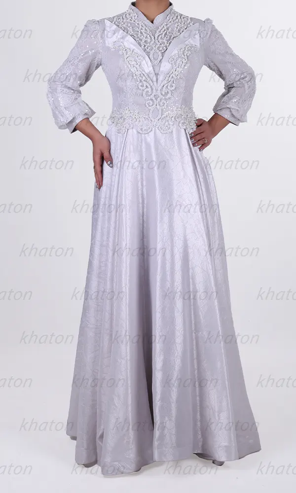 لباس نامزدی ستن حریر و بالاتنه کار شده