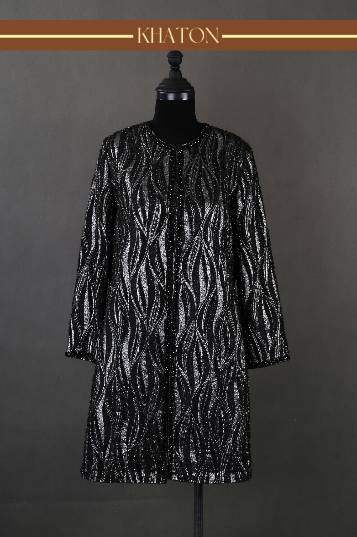 مانتو پاییزه باران ، با طرحی جدید و پارچه ای بسیار کار شده و زیبا با رنگ مشکی ، از سایز 42 تا 44 در بوتیک خاتون برای شما مشتریان عزیز موجود است
