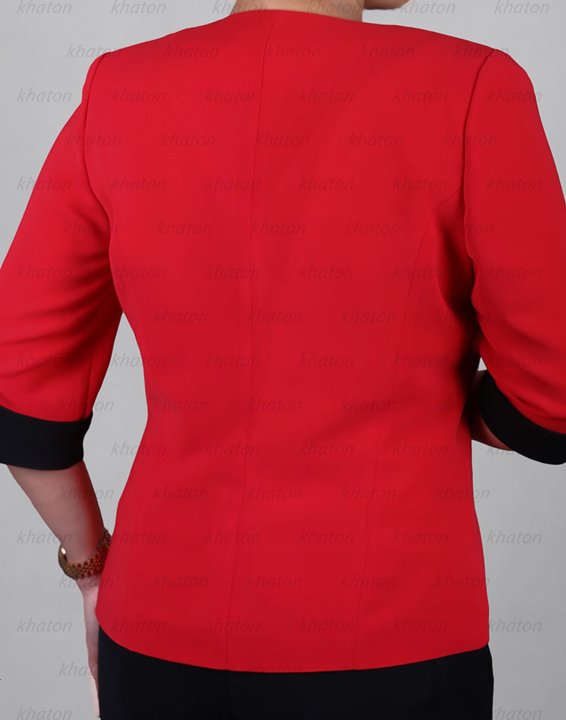 کت تاپ قرمز و مشکی، مشخصات آستین برگردان و سه ربع، قزن دار، جنس تاپ ریون،چهار فصل.